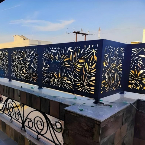 לוחות גדר פלדה מגולוונת/סגסוגת אלומיניום בחיתוך לייזר, גידור מעקות מרפסת לפרטיות חיצונית